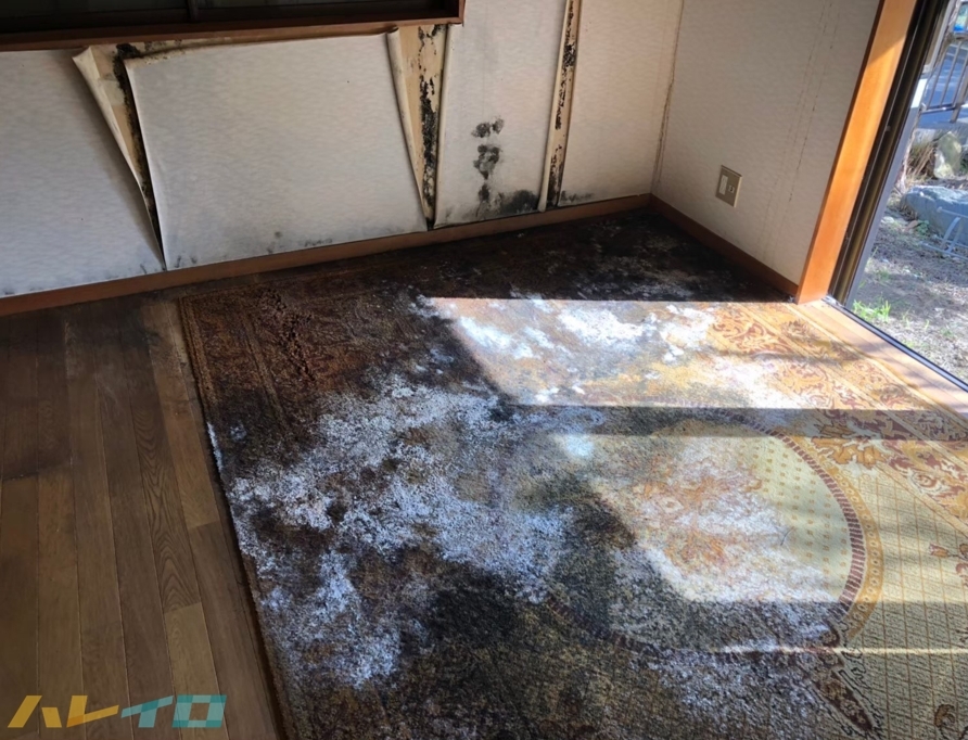 不測かつ突発的な事故によって室内の家財が破損し、火災保険の支払い対象と確認された損害箇所の現場写真です。