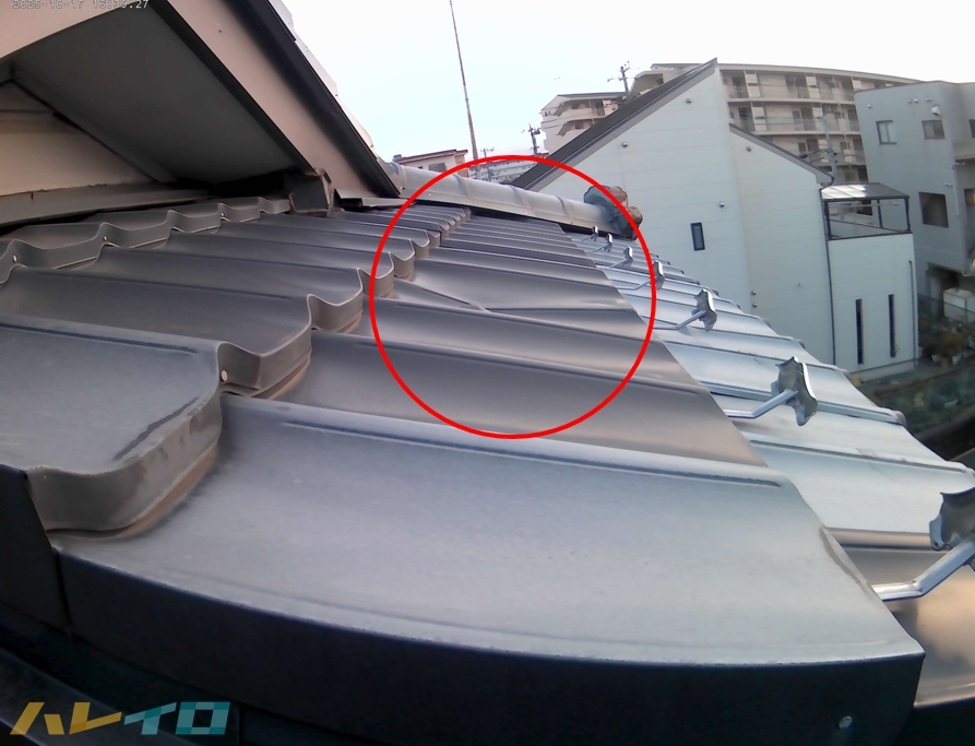 強風によって屋根材が部分的に飛散したものの、調査時点では室内への雨水の侵入は確認されていませんでした。