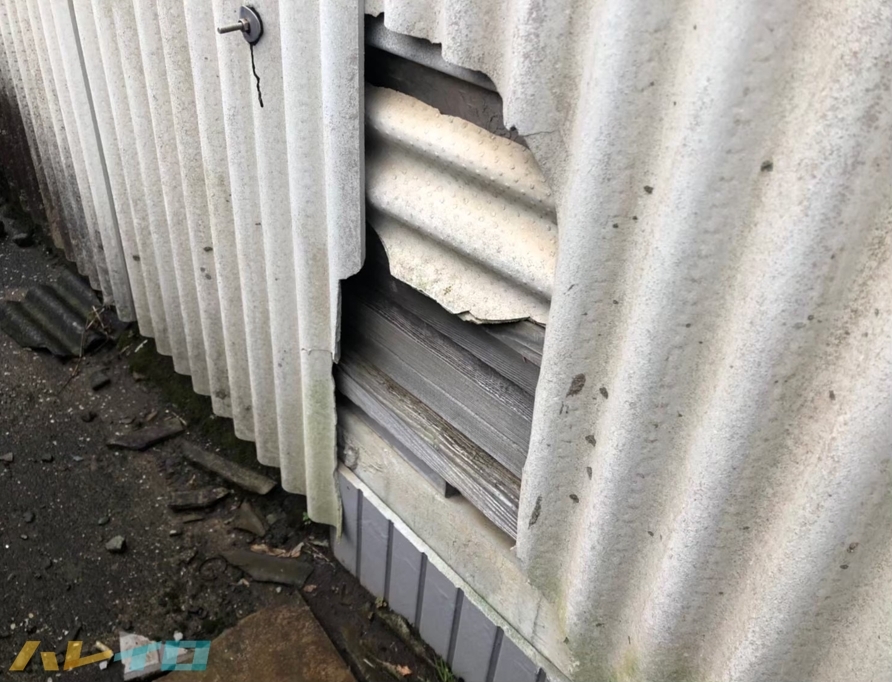 本事例は、令和元年10月12日に発生した台風19号の影響により、屋根のスレート材が飛散したケースです。
