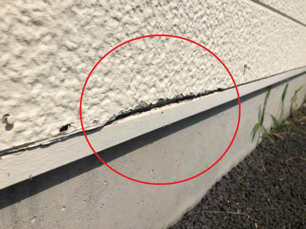 膨張と収縮で表面に細かいひびが発生。放置すると雨水が侵入しやすくなります。 - シーリングの割れ・剥離