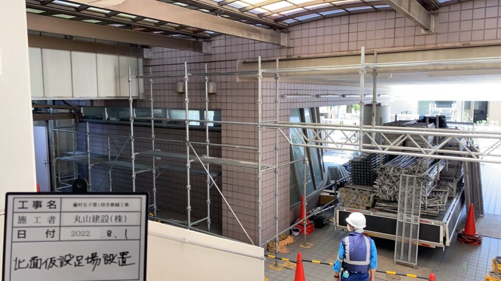 しかしその足場には、作業する職人さんの安全はもちろん、通学する生徒の皆さまや、周囲を通行される方々への “目に見えない安全” が込められています。