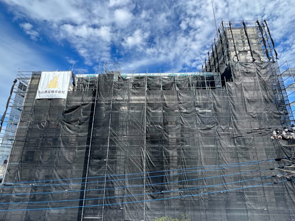 仮設足場のネット養生を外していくと、少しずつ建物の全貌が見えてきますが、大規模修繕工事を施工する建設会社側としては、この瞬間が一番うれしい時です。