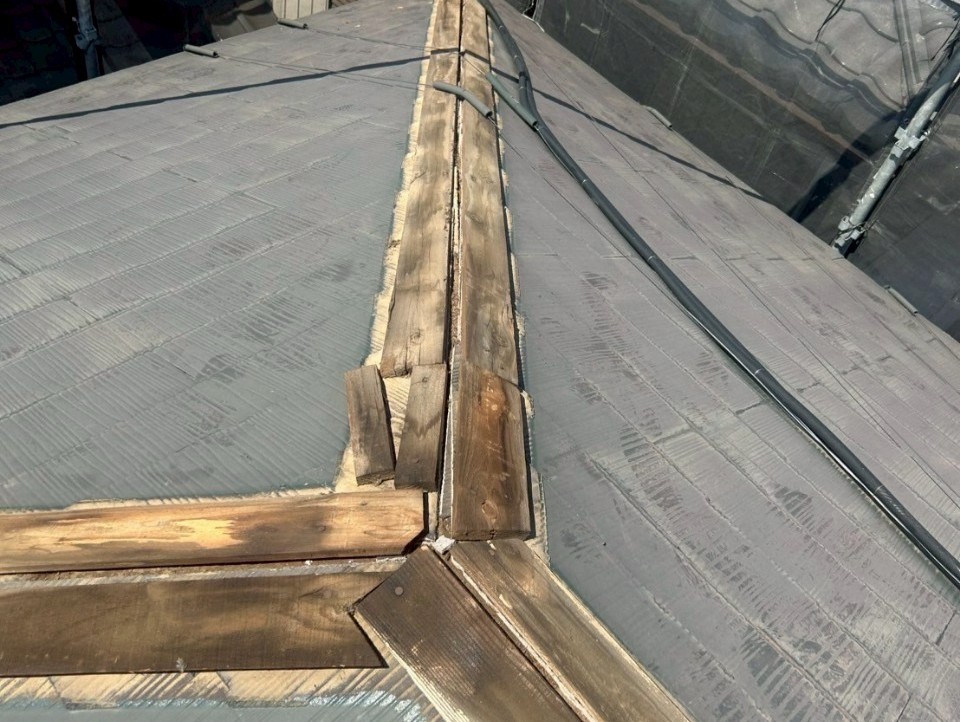 劣化が広範囲に及んでいたため、部分補修ではなく棟板金の交換工事を選びました。古い板金を撤去し、下地を整えたうえで新しい棟板金を取り付けることで、長く安心できる状態を目指しています。