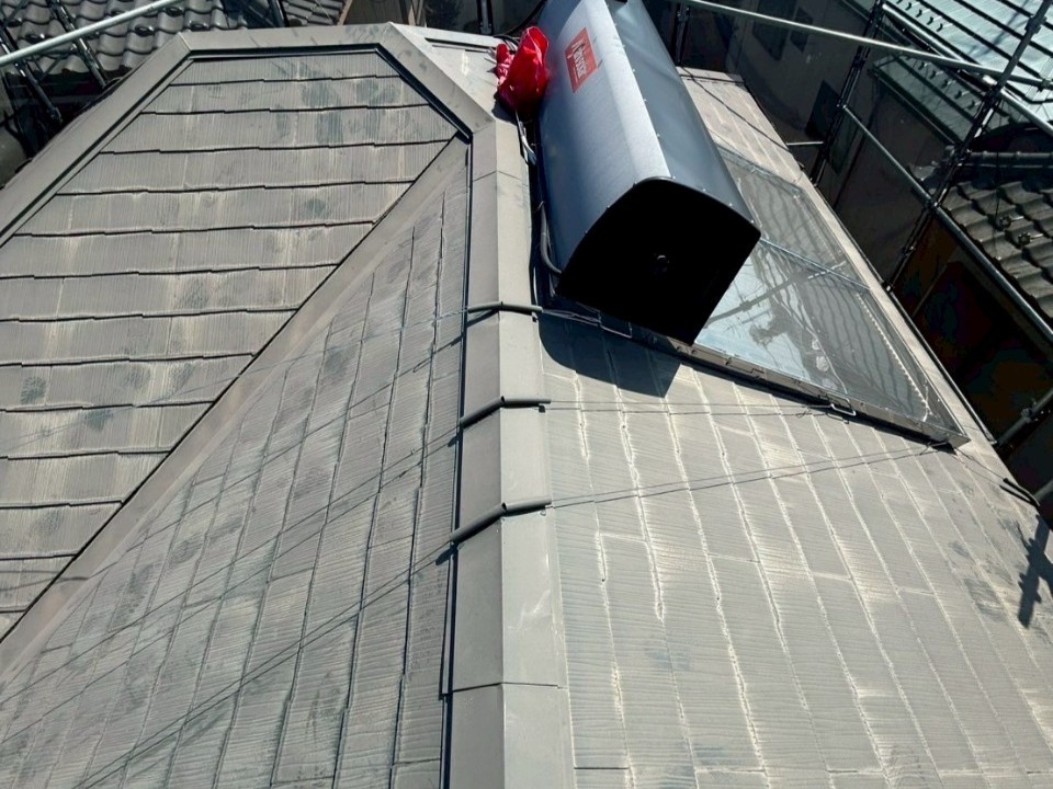 交換後は棟部分がまっすぐ整い、屋根全体が引き締まった印象になりました。固定力も高まり、強風時の不安が解消されています。