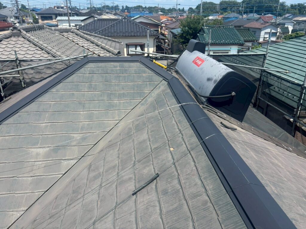 2025年8月、東松山市の戸建て住宅にて棟板金交換工事を行いました。