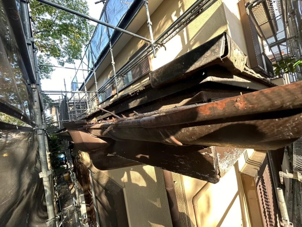 劣化している雨樋を残したまま施工すると不具合が再発する可能性があるため、古い雨樋を丁寧に撤去します。