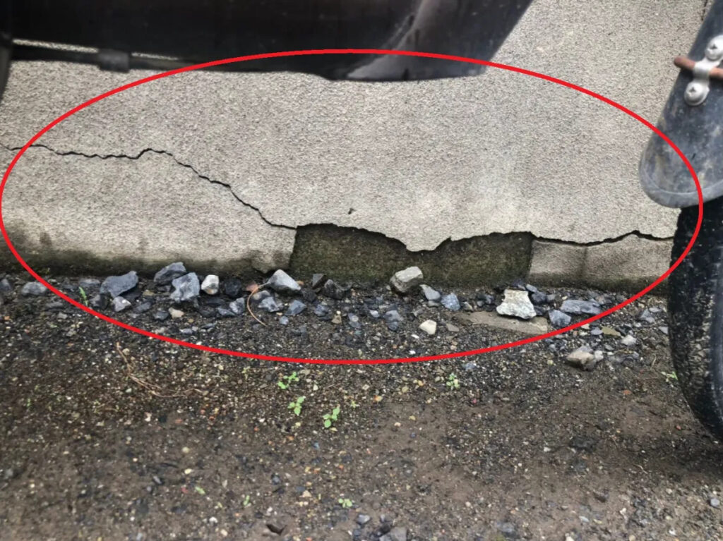 基礎部分にできる1〜3mmほどの亀裂。地震直後に確認される場合は、申請対象になりうる大切な損傷です。